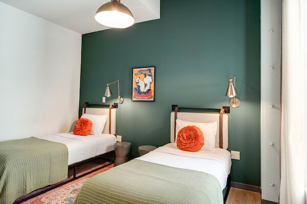 137 - 138 Sq.FT Sleeps Two A Classic Room at Nell’s perfectly combines modern sophistication with moody minimalism. Ideal for two guests, it offers a choice of a queen bed or two twin beds along with all your everyday amenities.